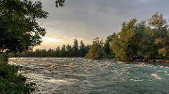 Die weitere Fahrt war sehr angenehm, der Fluss wirkt sehr natürlich mit seinen vielen Wiesen und kleinen Wäldern ringsum und die Fahrt ist auch für jeden leicht zu meistern. Trotzdem gibt es ein paar „gefährlichere“ Stellen, an denen man sich etwas verausgaben und/oder surfen kann.
