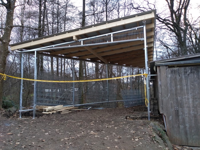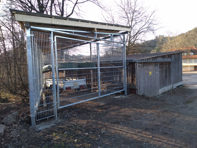 - Alexander Kagan und Mitarbeiter montierten die tragende, verzinkte Stahlkonstruktion, setzten das Dach auf und montierten die Tore und die Stabmatten.