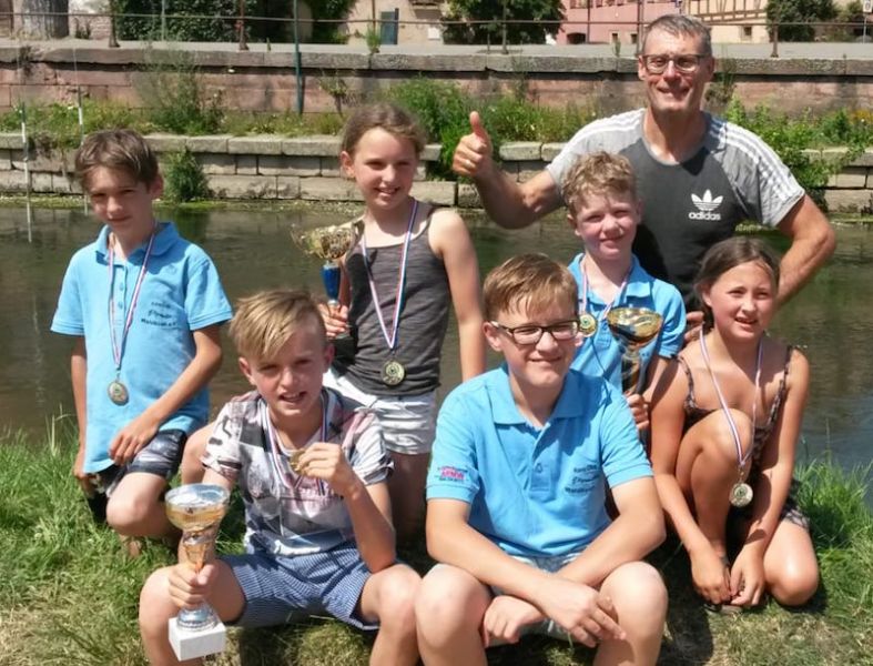Bereits am Vortag nutzte das Team der kleinsten Elzwelle-Sportler unter Leitung von Stützpunkttrainer Frank Schweikert die Gelegenheit, auf der bereits ausgehängten Strecke zu trainieren. Bei der Hitze von weit über 30°C gab es nichts Besseres, als Wassersport auf der Ill zu betreiben – Kühlung inbegriffen.