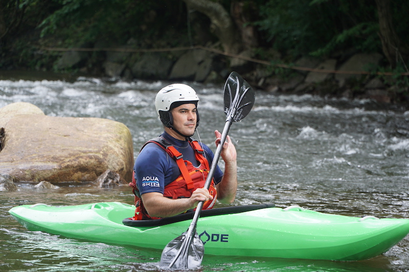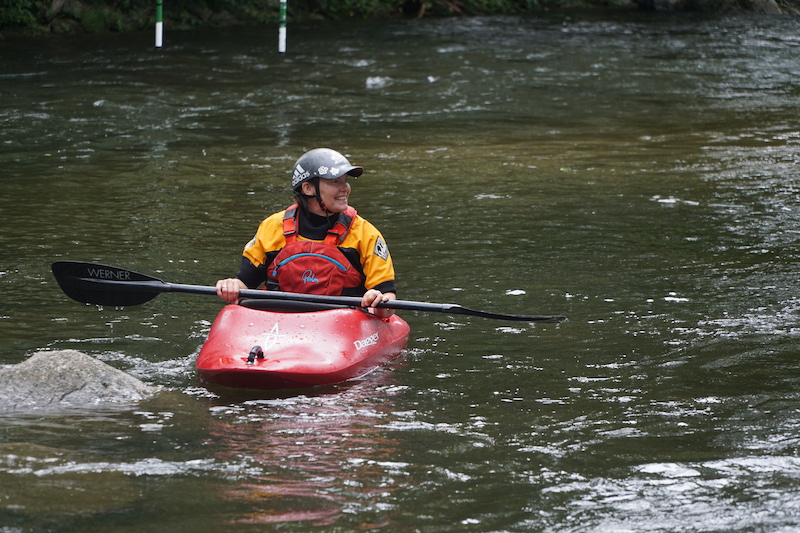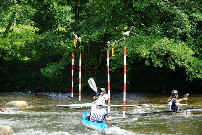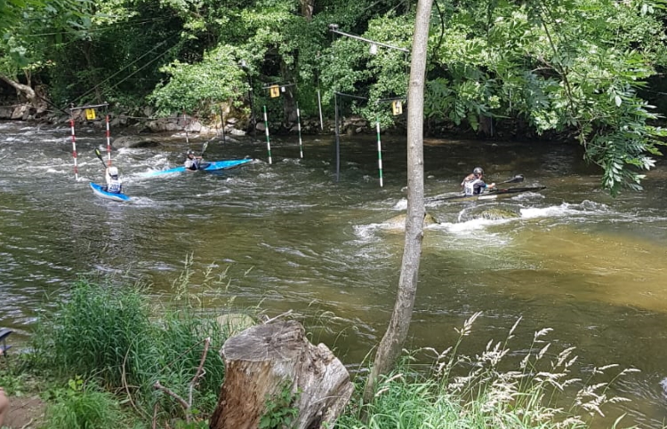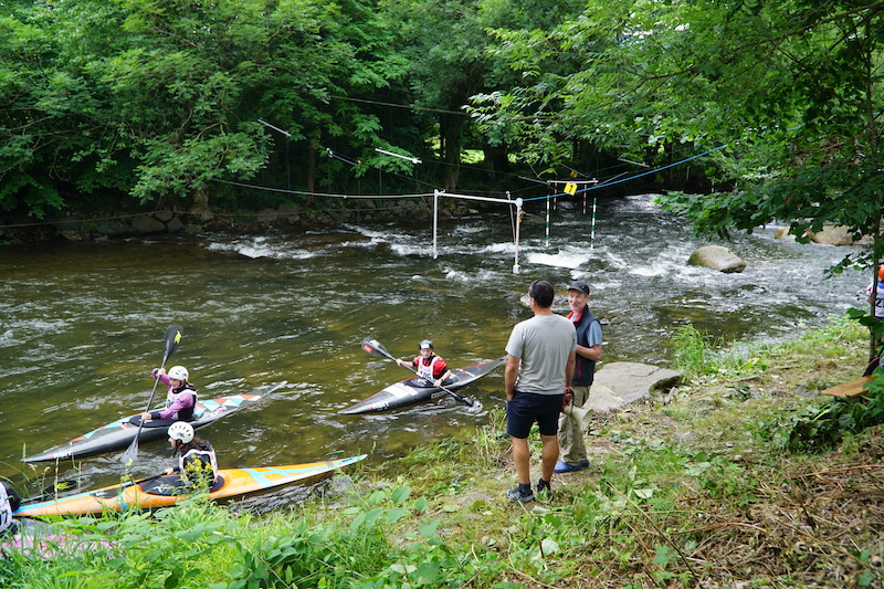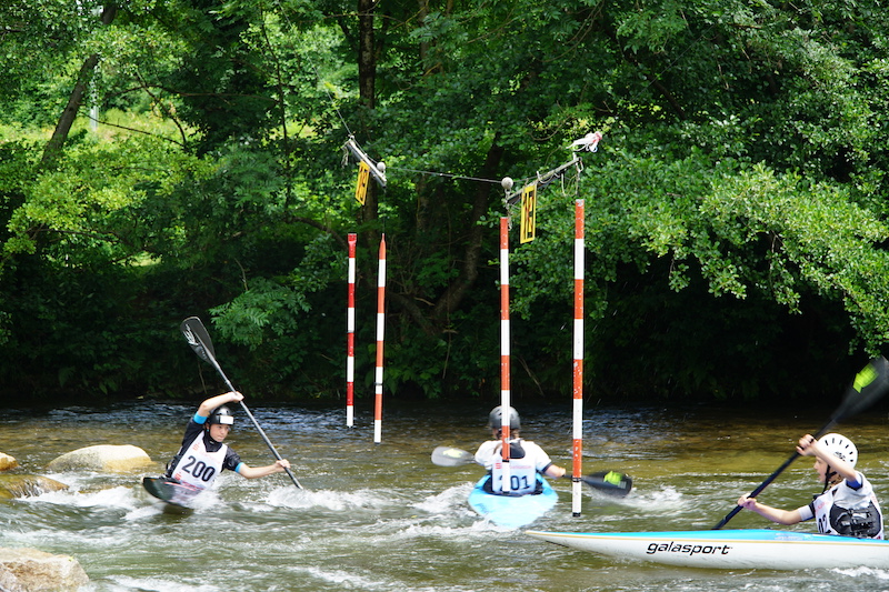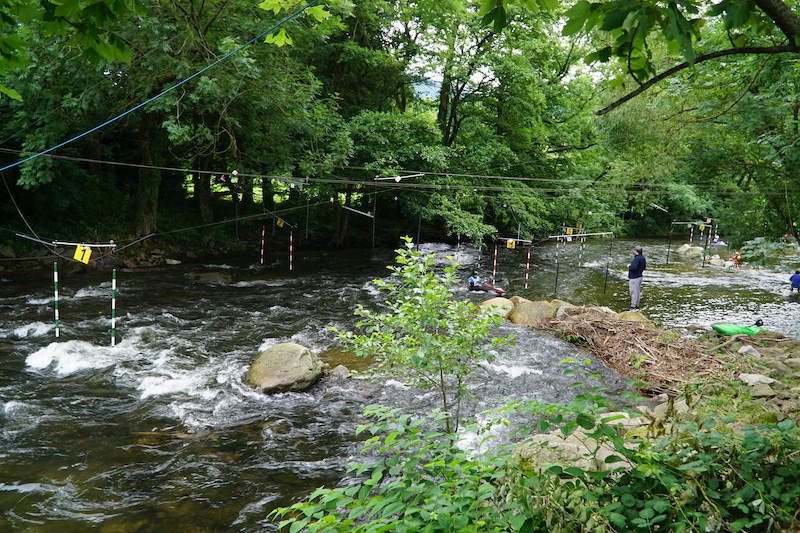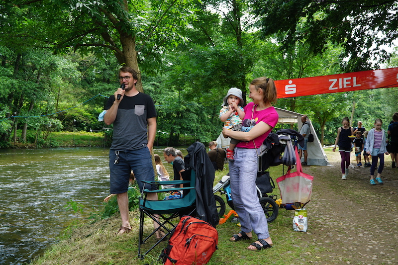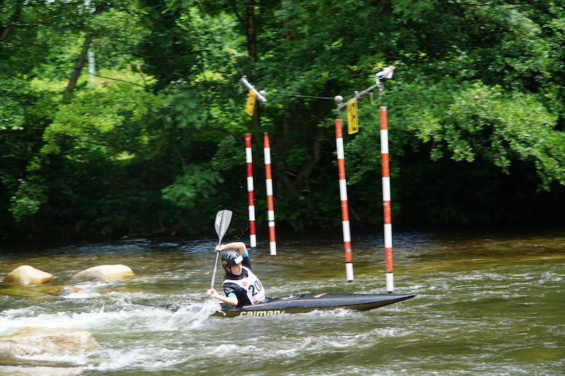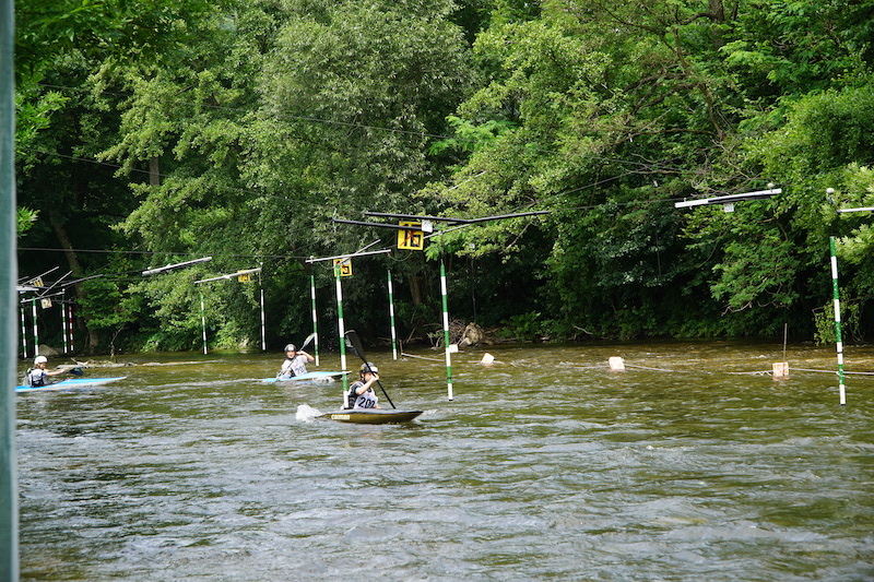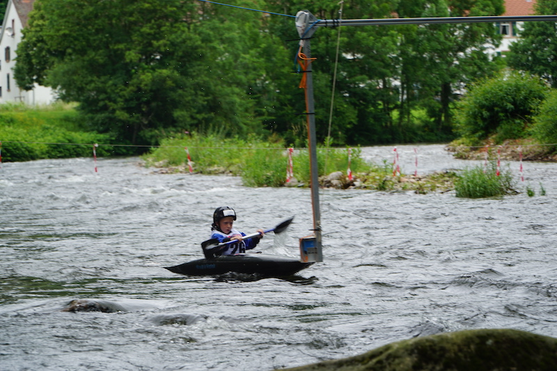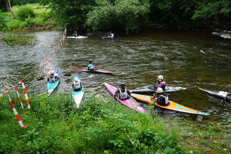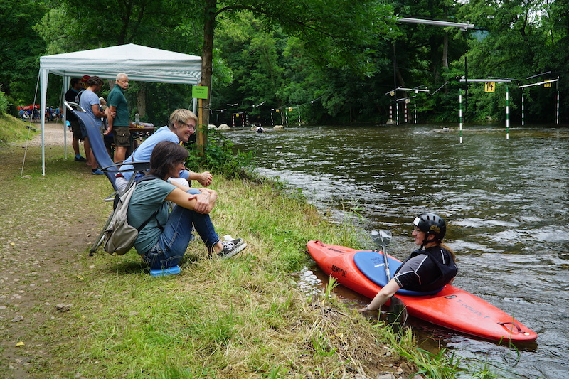 Aufgrund der seit Wochen anhaltenden niederschlagsfreien Wetterlage mit entsprechend geringer Wasserführung der Elz findet der Wettkampf auf der unteren, aufgestauten Strecke statt.