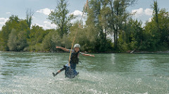 Die weitere Fahrt war sehr angenehm, der Fluss wirkt sehr natürlich mit seinen vielen Wiesen und kleinen Wäldern ringsum und die Fahrt ist auch für jeden leicht zu meistern. Trotzdem gibt es ein paar „gefährlichere“ Stellen, an denen man sich etwas verausgaben und/oder surfen kann.