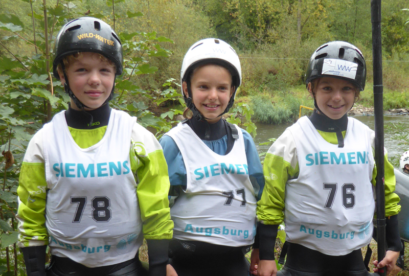 Die Strecke mit durchgehend leichtem Wildwasser stellt besonders für die Allerkleinsten eine Herausforderung dar, der sich die Schüler C Leni Mack, Lilly Erschig und in seinem ersten Wettkampf Justus Kleinschmit stellten.