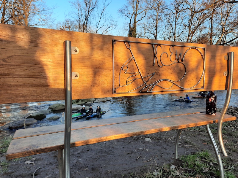Nachdem die Rückenlehne des Geburtstagsgeschenks unseres ersten Vorstandes zum 60. Geburtstag im vergangenen Jahr nach kurzer Zeit der Installation demontiert und geklaut wurde, haben unsere Vereinsmitglieder Alex und Irina Kagan in mühevoller Arbeit wieder eine Rückenlehne mit wunderschönem Kunstwerk geschaffen.