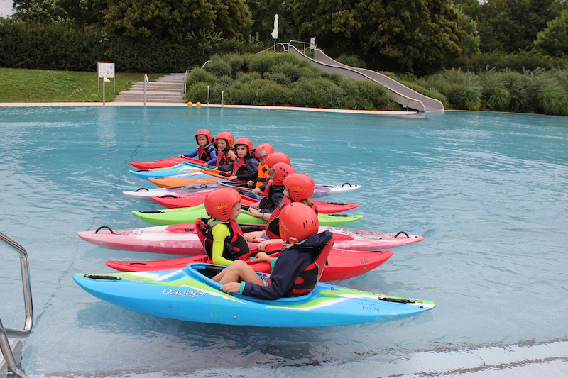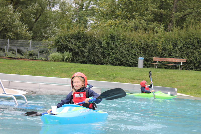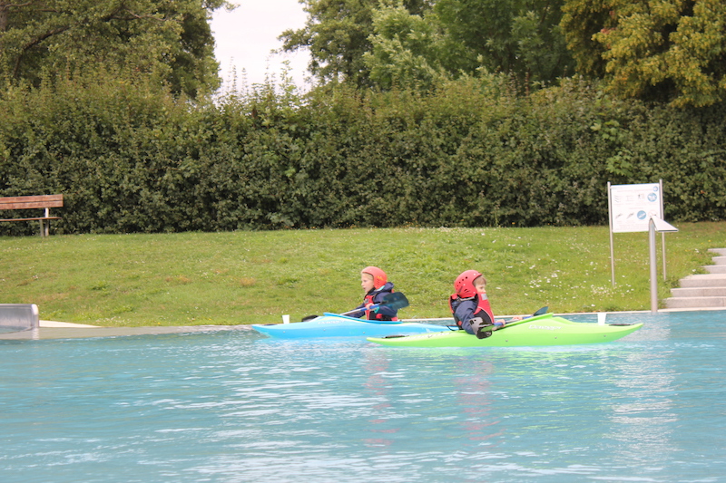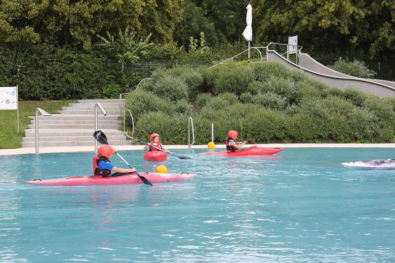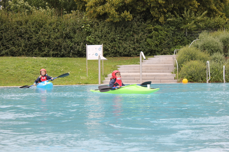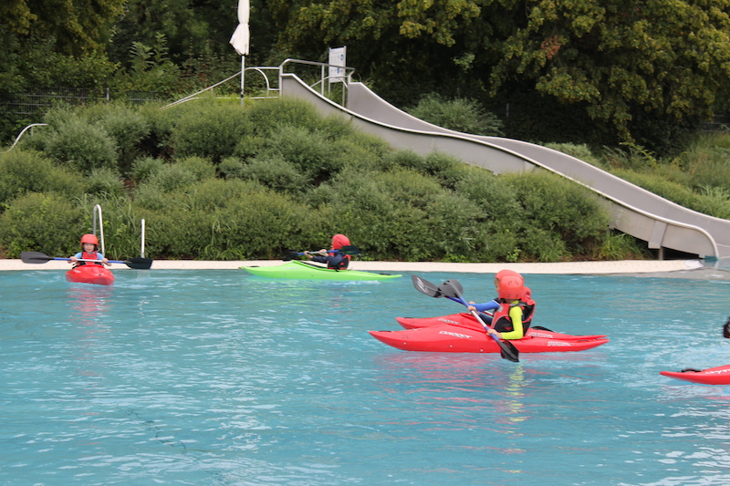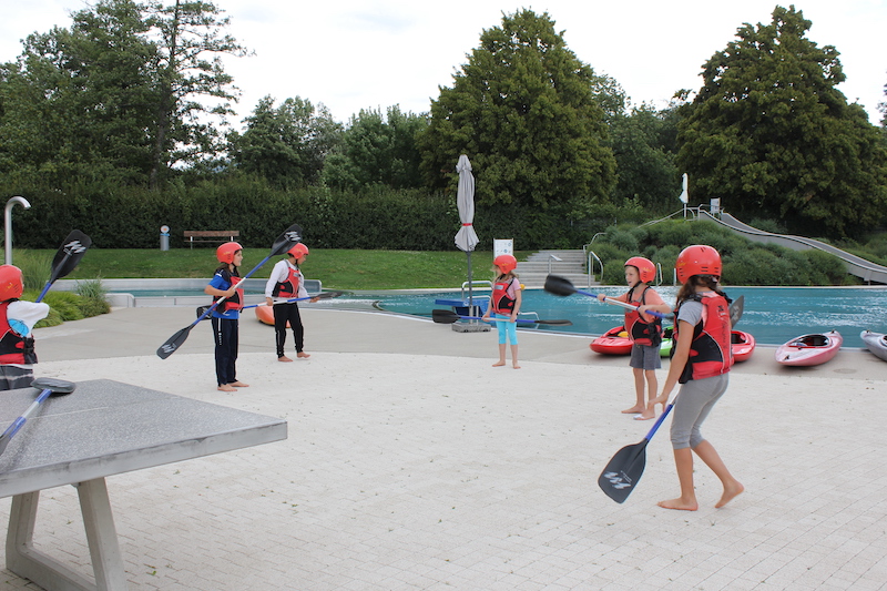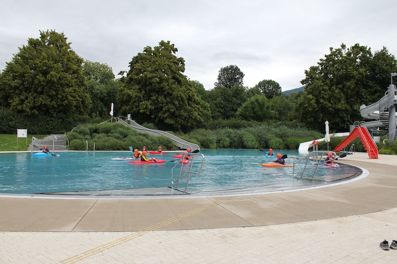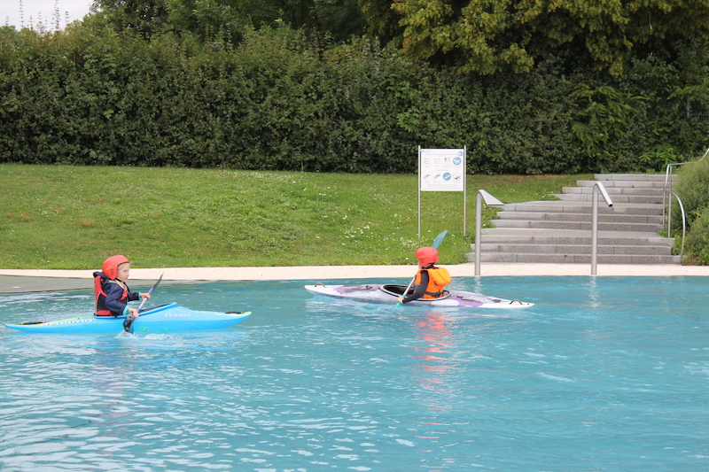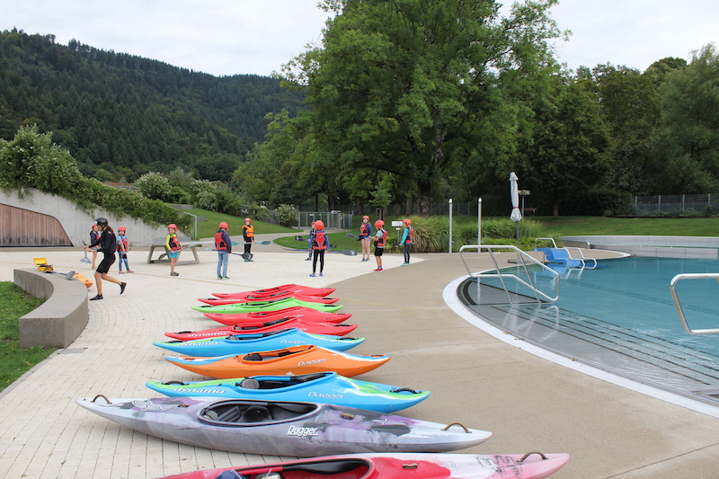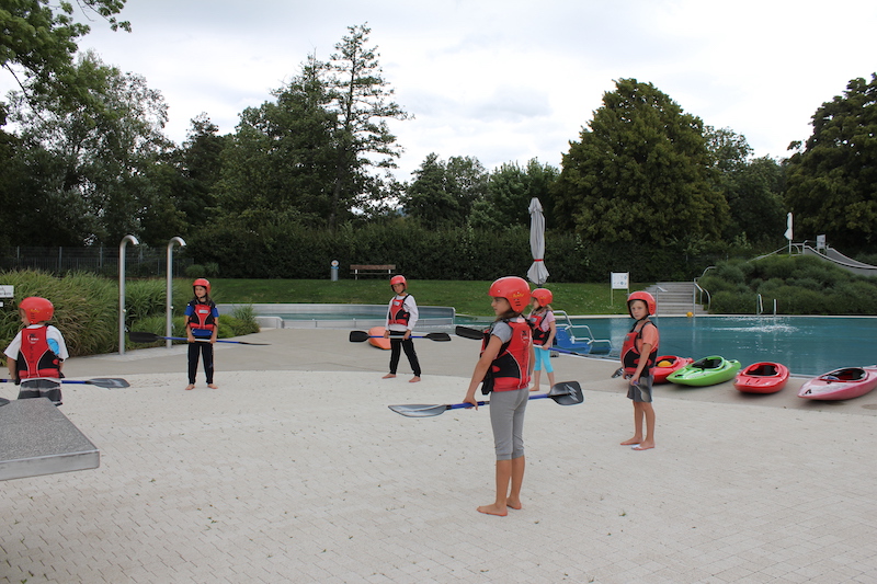 Auch dieses Jahr beteiligte sich die Elzwelle an der Ferienspielaktion der Stadt Waldkirch. Im Freibad konnten viele Kinder erste Erfahrungen mit Paddel und Kanu machen.