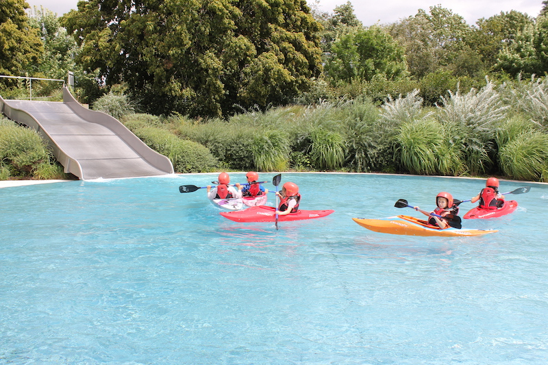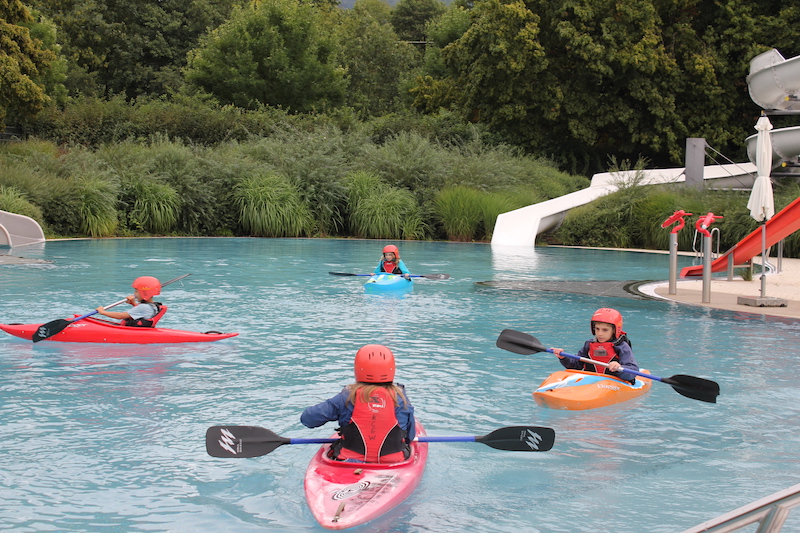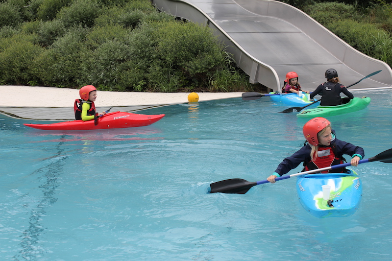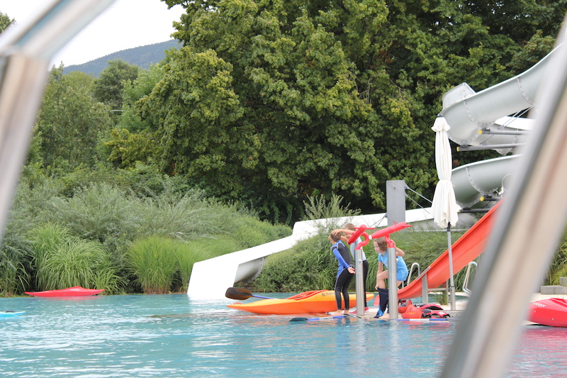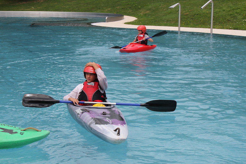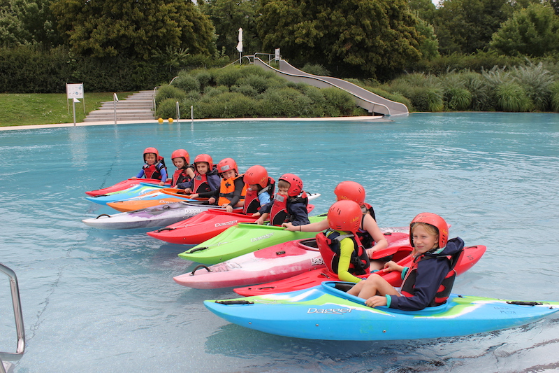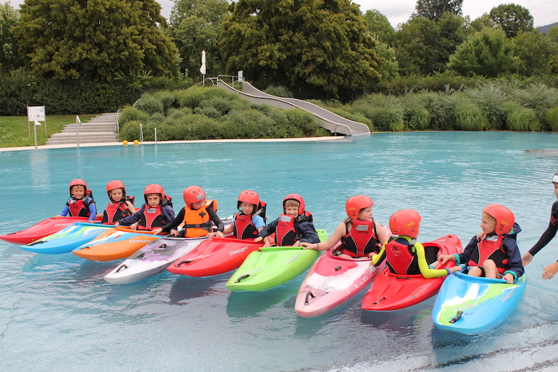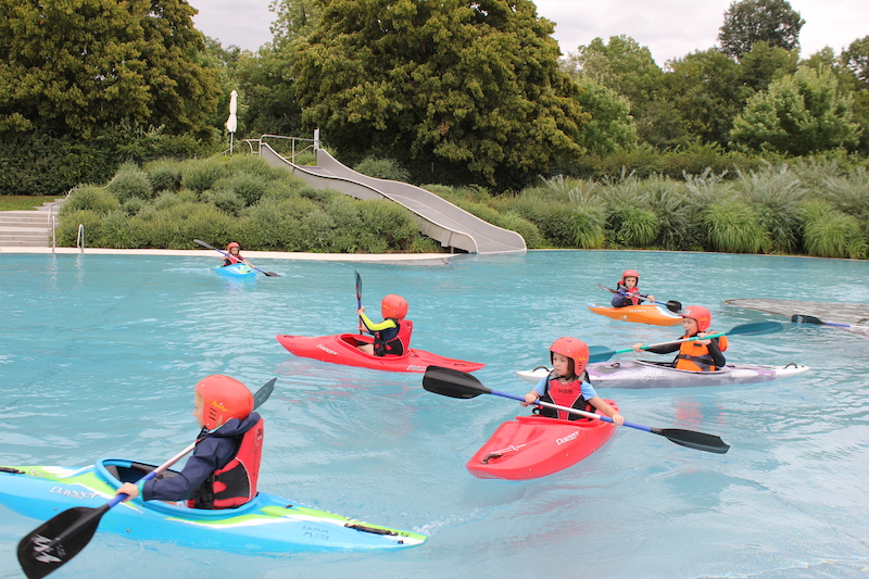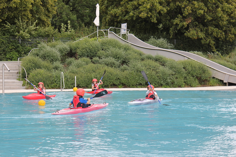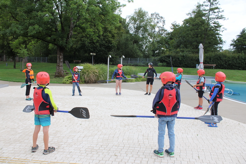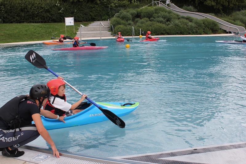 Auch dieses Jahr beteiligte sich die Elzwelle an der Ferienspielaktion der Stadt Waldkirch. Im Freibad konnten viele Kinder erste Erfahrungen mit Paddel und Kanu machen.