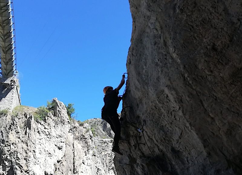 Am Mittwoch Morgen sind wir gemeinsam zu einem Klettersteig in der Nähe gefahren. Der Klettersteig war in vier Abschnitte unterteilt, die jeweils verschiedene Schwierigkeitsgrade aufwarfen.
